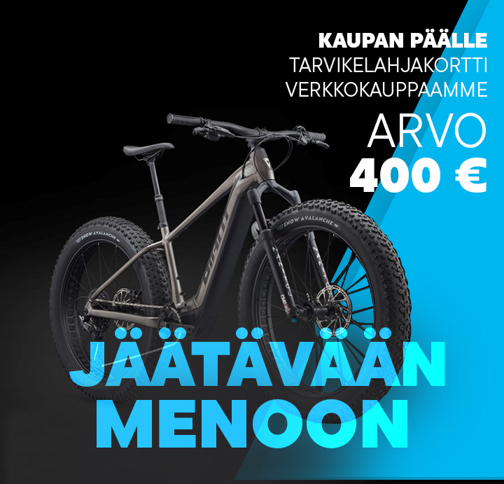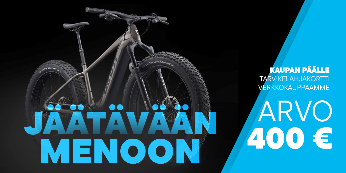 Ennakkotilaajan etuna tarjoamme kaikille pyörän lunastaville 400 euron tarvikelahjakortti verkkokauppaamme kaupan päälle! Tarvikelahjakortti voimassa 3 kk ostopäivästä.