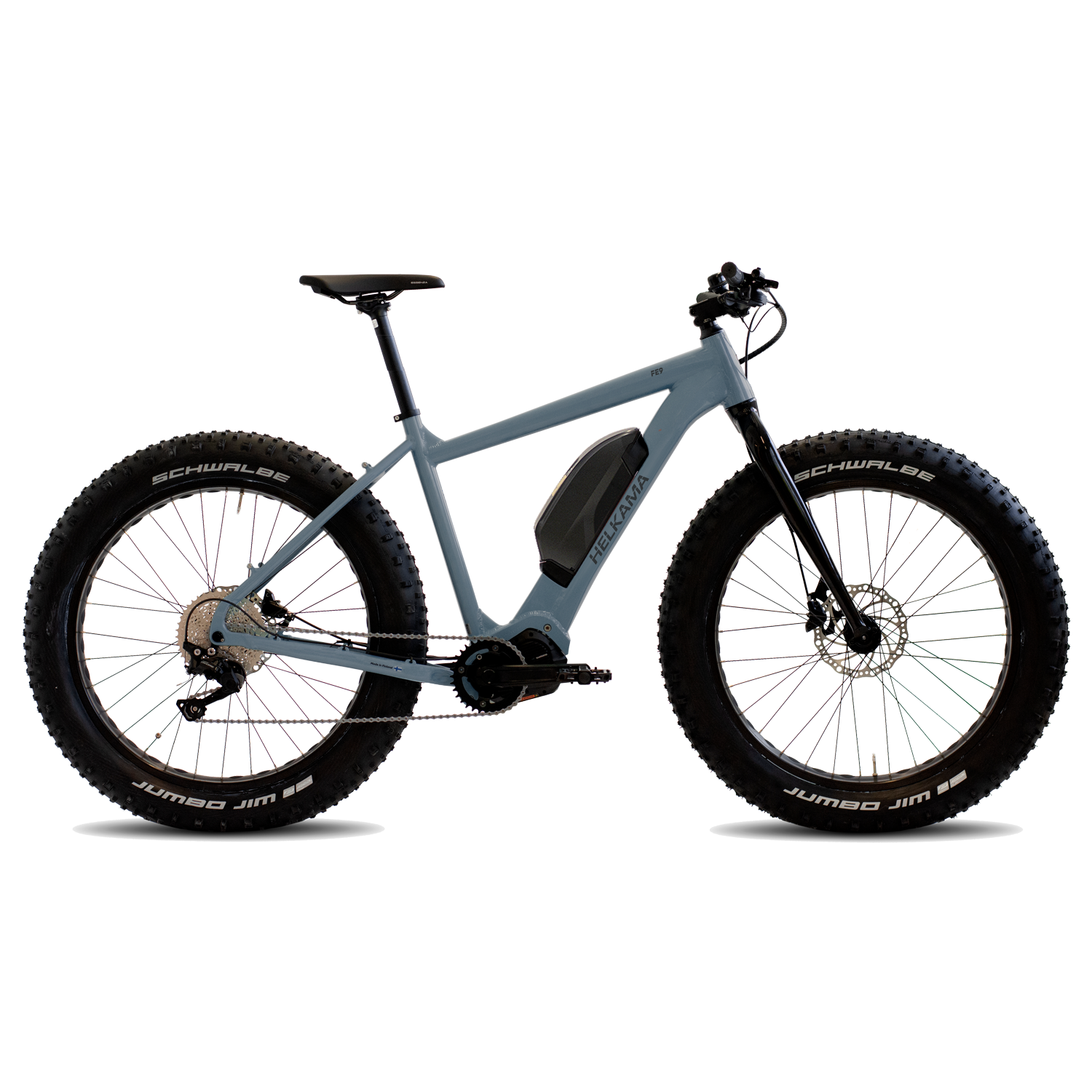 Alumiinirunko, tehokkaat hydrauliset levyjarrut sekä Schwalben Jumbo Jim 4,8″ 120-559 renkaat.