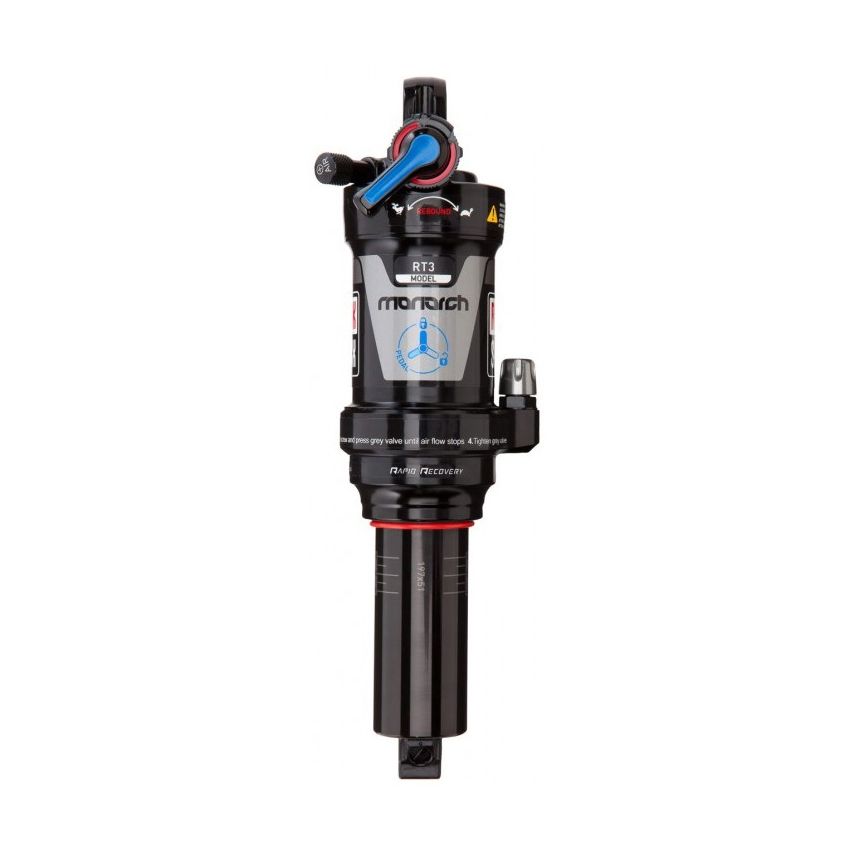 RockShox Monarch RT3 D1 on kevyt ja kestävä takaiskunvaimennin, joka tarjoaa pehmeän ja ennustettavan ajotuntuman. Sen Solo Air -jousi mahdollistaa ilmanpaineen säätämisen yhdellä Schrader-venttiilillä, täyttäen sekä positiiviset että negatiiviset ilmakammiot samanaikaisesti. Tämä takaa nopean ja helpon säädön sekä kevyimmän mahdollisen ilmajousen. Rapid Recovery -teknologia nopeuttaa vaimentimen palautumista peräkkäisten iskujen välillä, parantaen pyörän maastonseurantakykyä. Vaimentimessa on ulkoisesti säädettävä paluuvaimennus ja kolme puristusvaimennuksen asentoa (Avoin/Pedaali/Lukko), jotka mahdollistavat ajon mukauttamisen erilaisiin maastoihin. Kova-anodisoitu, taottu alumiinirunko sag-asteikolla ja 10 mm:n 7075-alumiiniakseli takaavat kestävyyden ja tarkkuuden.